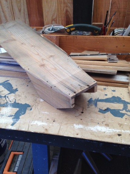 組むのに使うのは木工用ボンドと、今回のために購入した細い木ネジです。「隠し釘」を使うという案もあったのですが、パレット等の廃材を使った工作においては、釘やネジの頭が見えていた方が武骨な雰囲気が出て面白いなと思ったので。